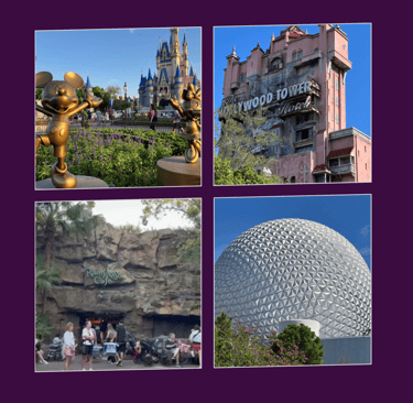 Cada uno ofrece experiencias únicas: desde volar por el espacio o recorrer la sabana africana hasta viajar por el mundo sin salir de Orlando. Durante los próximos días te contaré la magia de cada uno y las atracciones que no te puedes perder. 🌟 💜 Tu Experta en Viajes by Martha Spamer